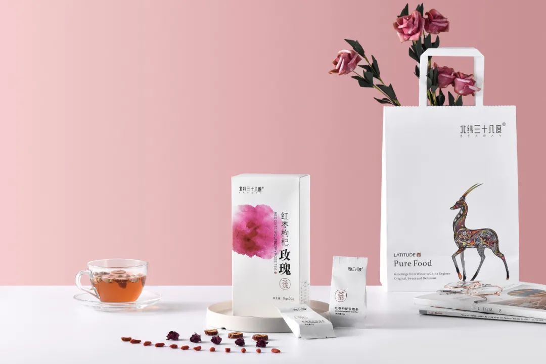 红枣枸杞玫瑰茶以北纬三十八度以自有食材为主,根据中国传统医学科学配比而成。楼兰红枣具有补益脾胃,养血安神的作用;宁夏枸杞具有补肾益精,养肝明目的作用;苦水玫瑰花具有行气活血,疏肝止疼的作用。红枣枸杞玫瑰茶集三者功效为一体,久喝可护肤养颜, 杏面桃腮;平衡情绪,如沐春风。