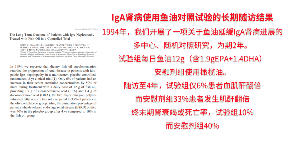 2、美国的梅奥诊所对IgA患者进行了2年、4年、6年的对照实验,实验组服用鱼油,对照组服用安慰剂。