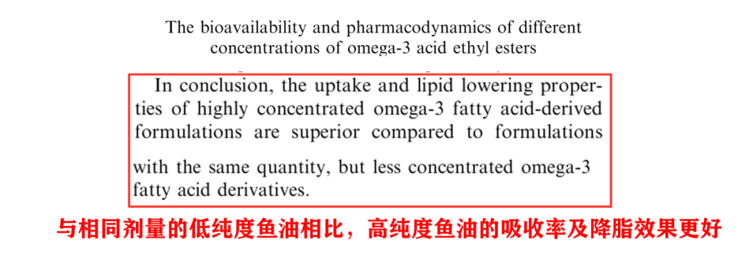 文献表明:纯度高的鱼油吸收率更高且降血脂等效果更好,即服用同等剂量的EPA和DHA,高纯度效果更好。