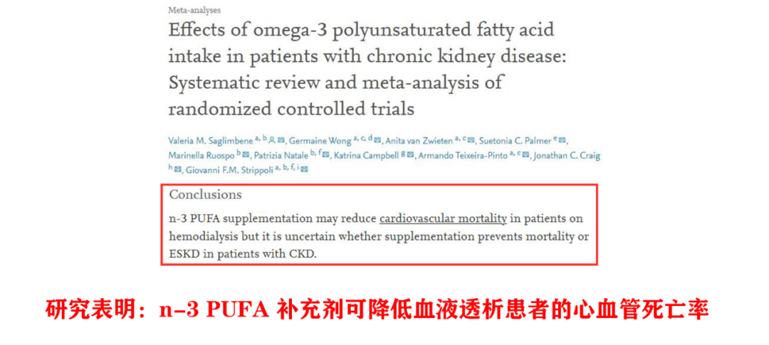 服用鱼油可显著降低血液透析患者的心血管死亡率。