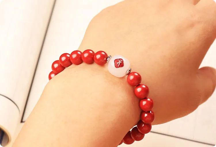 而且,配戴朱砂手链的益处多多,可静心安神,化煞辟邪,智慧提升,特别是在佛教文化里,朱砂常被做成佛珠、念珠,用以持佛念经时使用,是礼佛之人必备的吉祥物。