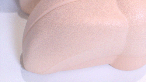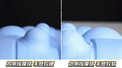 用手指按压也能很清楚地看到高强度指压区材质比温和按摩去更硬。