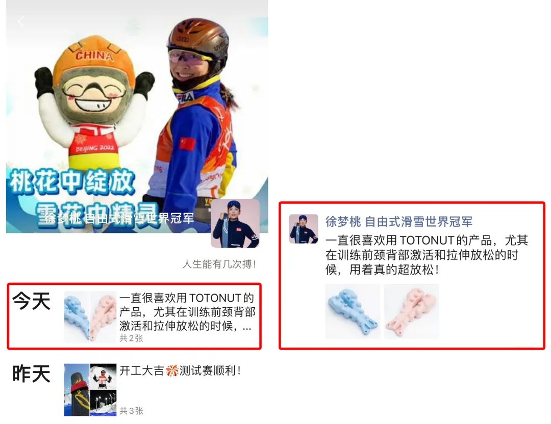 中国的冠军滑雪运动员徐梦桃甚至满意到为ta专门发了朋友圈!