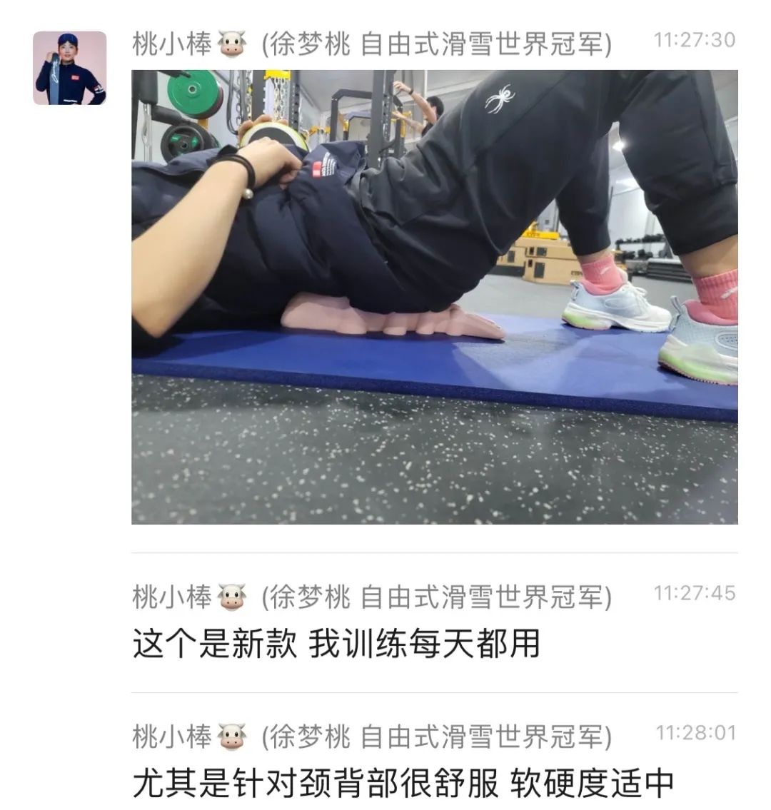除了拉伸颈椎,徐梦桃日常还会用来按摩和放松腰、背,小龙虾上的球球按摩起来力度刚刚好,特别舒服。