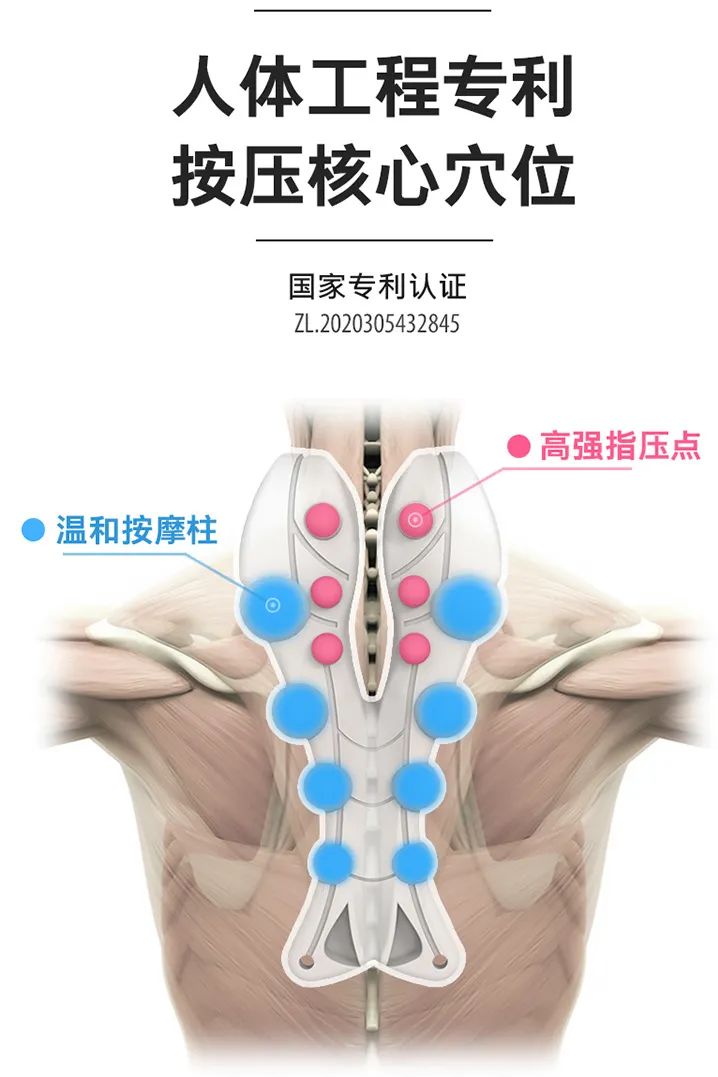 这是因为小龙虾的按摩区域对准了斜方肌和菱形肌群这两大背部主要的肌肉群,通过按压斜方肌和菱形肌,放松颈背部肌肉,恢复肌肉张力,自然就会呈现一个挺胸的姿势。