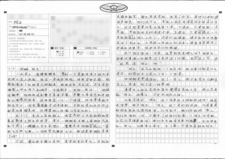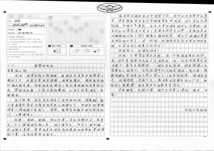该生刚入学,并不出众。成绩平平,就像文中所言“过去的我,并不优秀”。但是,却一直非常努力。随着时光流转,收获的不仅仅是她的成绩,更是她努力的见证,不服输的韧劲。少年,纵使前路漫漫,也要用努力这把剑披荆斩棘,一路向前!
