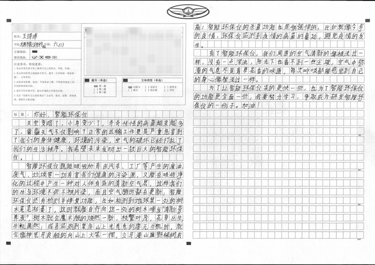 环境保护问题已经成为当今全球,乃至未来很长一段时间的热点话题。环境保护刻不容缓,发明一款智能环保仪也是当务之急。小作者的这台环保仪具有强大的功能,如果能早日变为现实,那将极大地改善我们的生存环境!期待!加油!