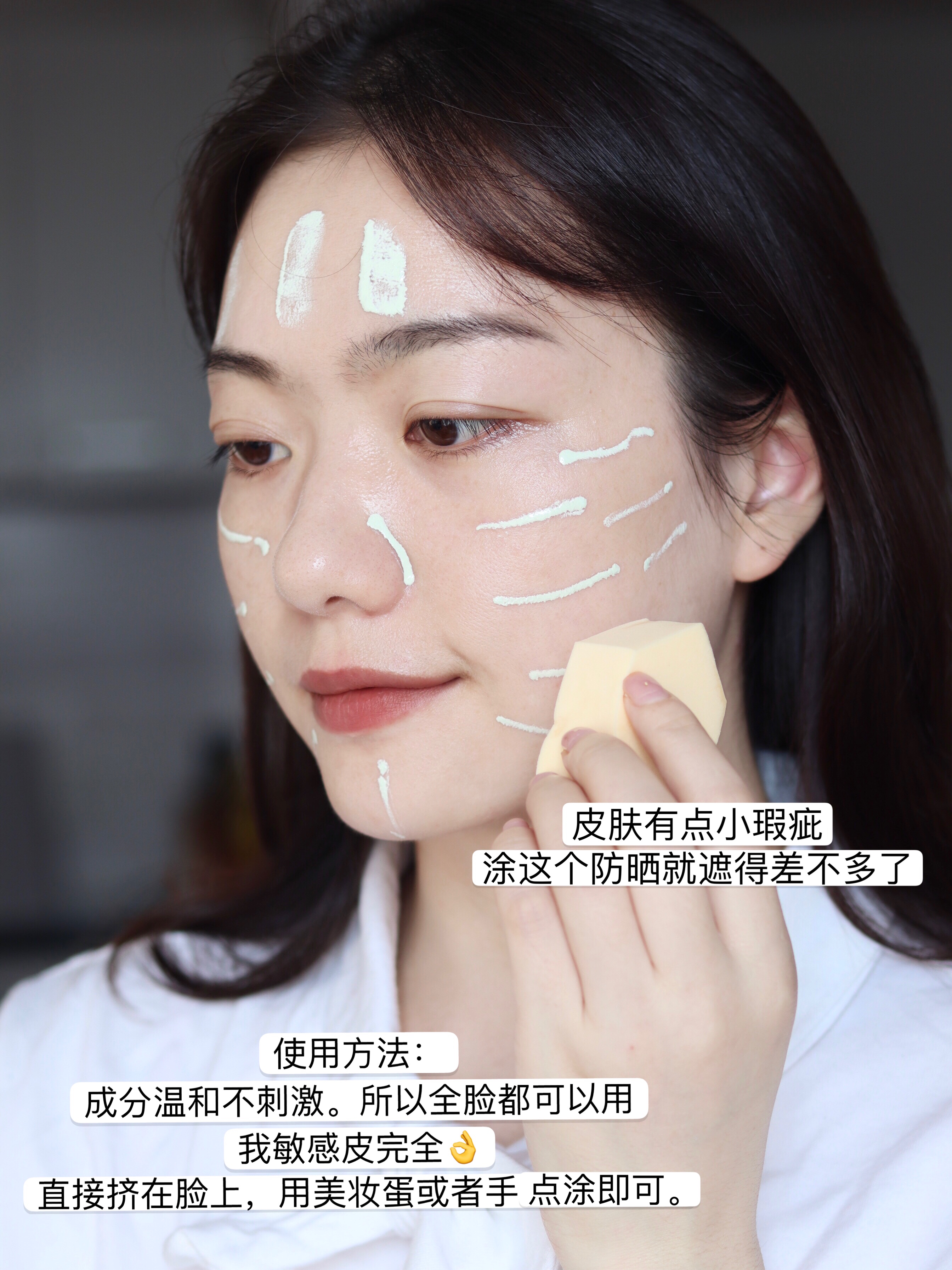 淡绿色的乳霜质地,细腻好推开,遮瑕效果杠杠的,泛红、痘印通通能遮盖。快速成膜,不搓泥不结块,会呼吸的防晒