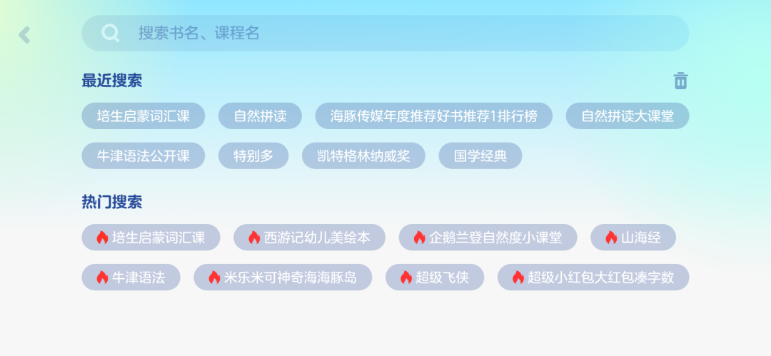 不仅改成了对孩子更友好的横屏操作,整体设计布局也更为简洁,再搭配上易于识别的大图标,每个版块一目了然。