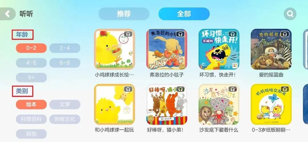 或是直接从年龄、主题、类别等一键匹配。