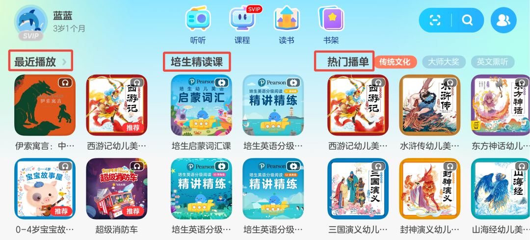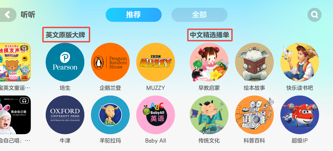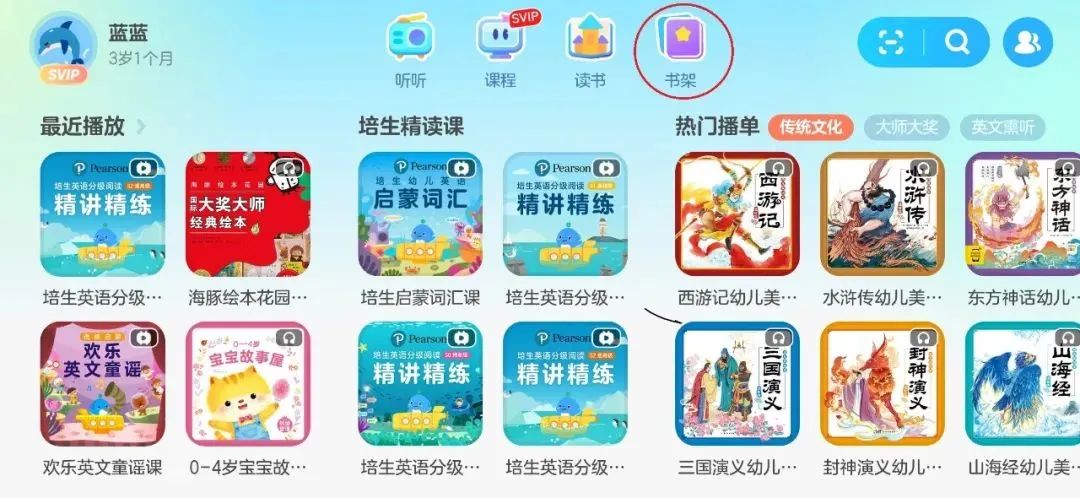 最近播放-培生精读课-热门播单-精选中文绘本-精选英文分级