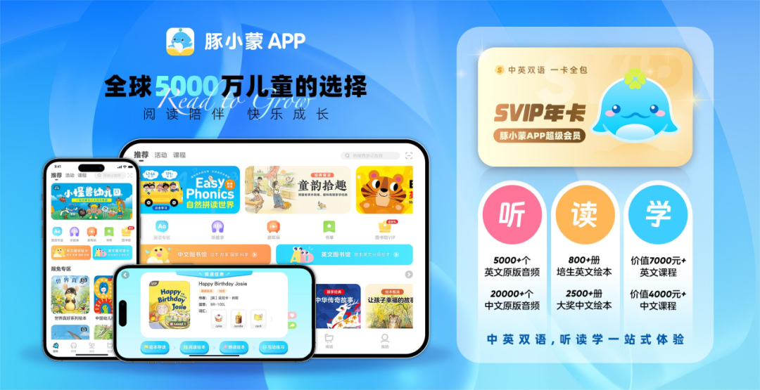 豚小蒙APP——一站式解决孩子的阅读难题,让孩子爱上阅读,享受精读的双语学习神器。