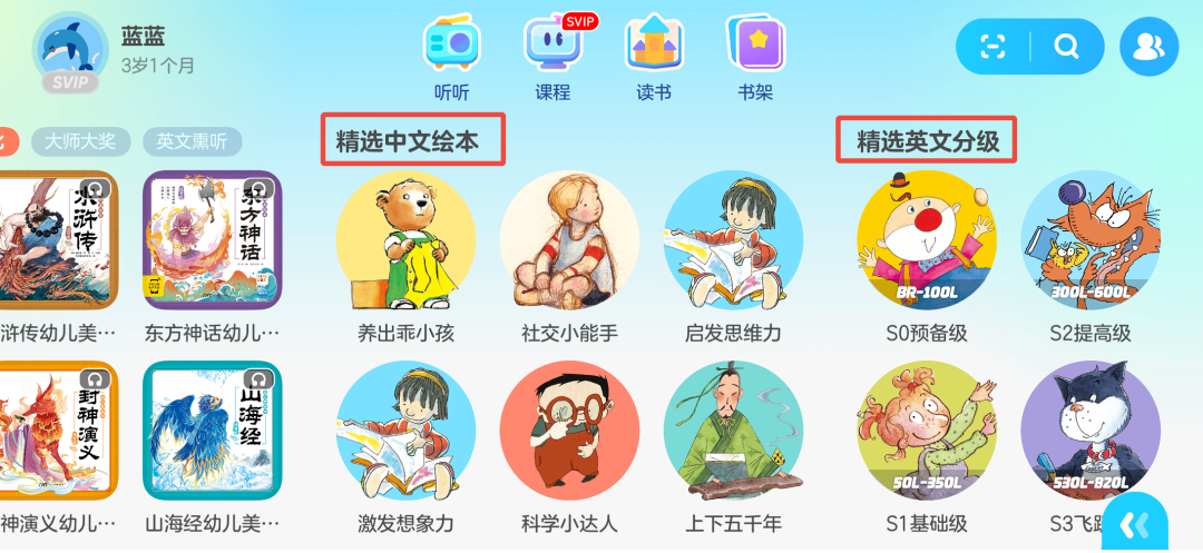 即便是小小孩,也能很容易就找到自己喜欢和想看的内容,全程无需复杂的步骤,只要点击对应图标,就能轻松开启沉浸式阅读学习之旅。