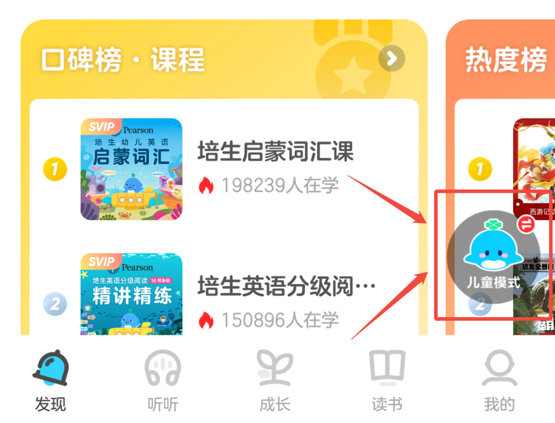 首先,点击APP右下方,切换到新上线的儿童模式。