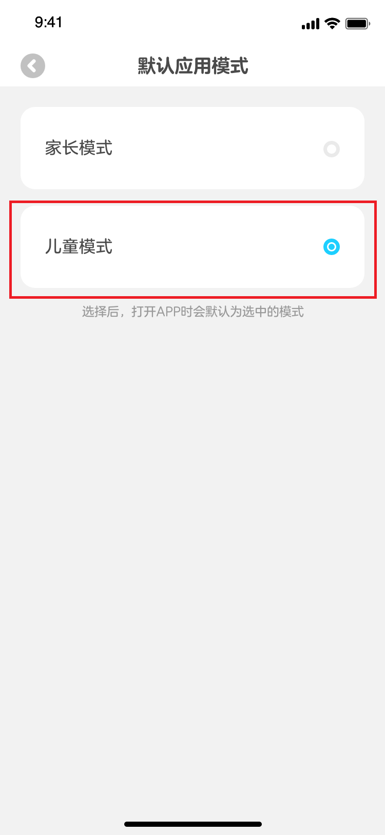 如果家长想引导孩子每日优先自主探索学习,还可在设置中心默认选中儿童模式,之后孩子每次打开就可以直接进入横版的儿童模式页面啦~