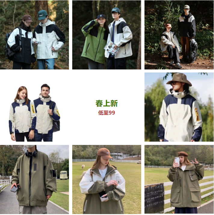 简单介绍到这,下文给大家详细介绍一下冲锋衣、夹克。