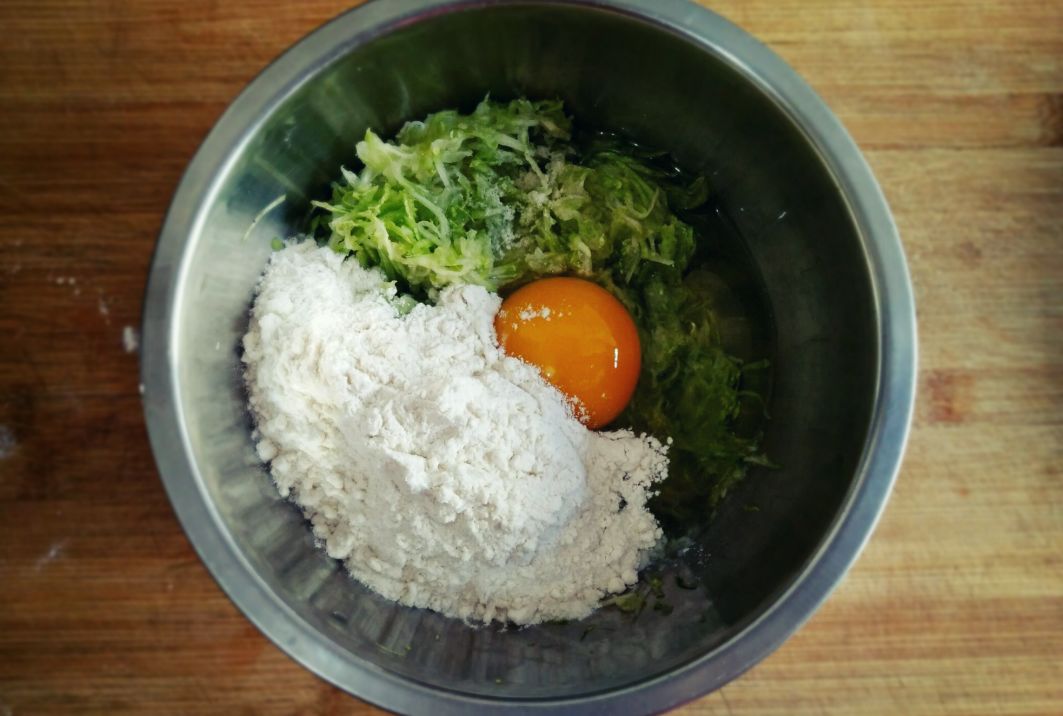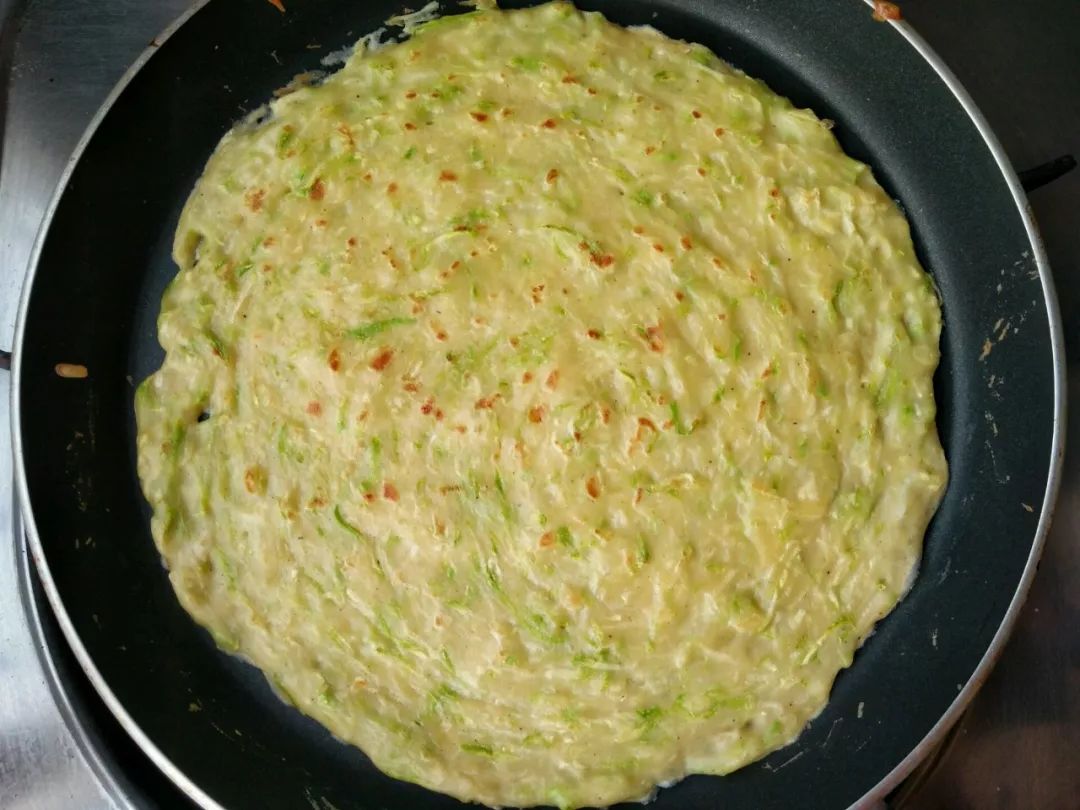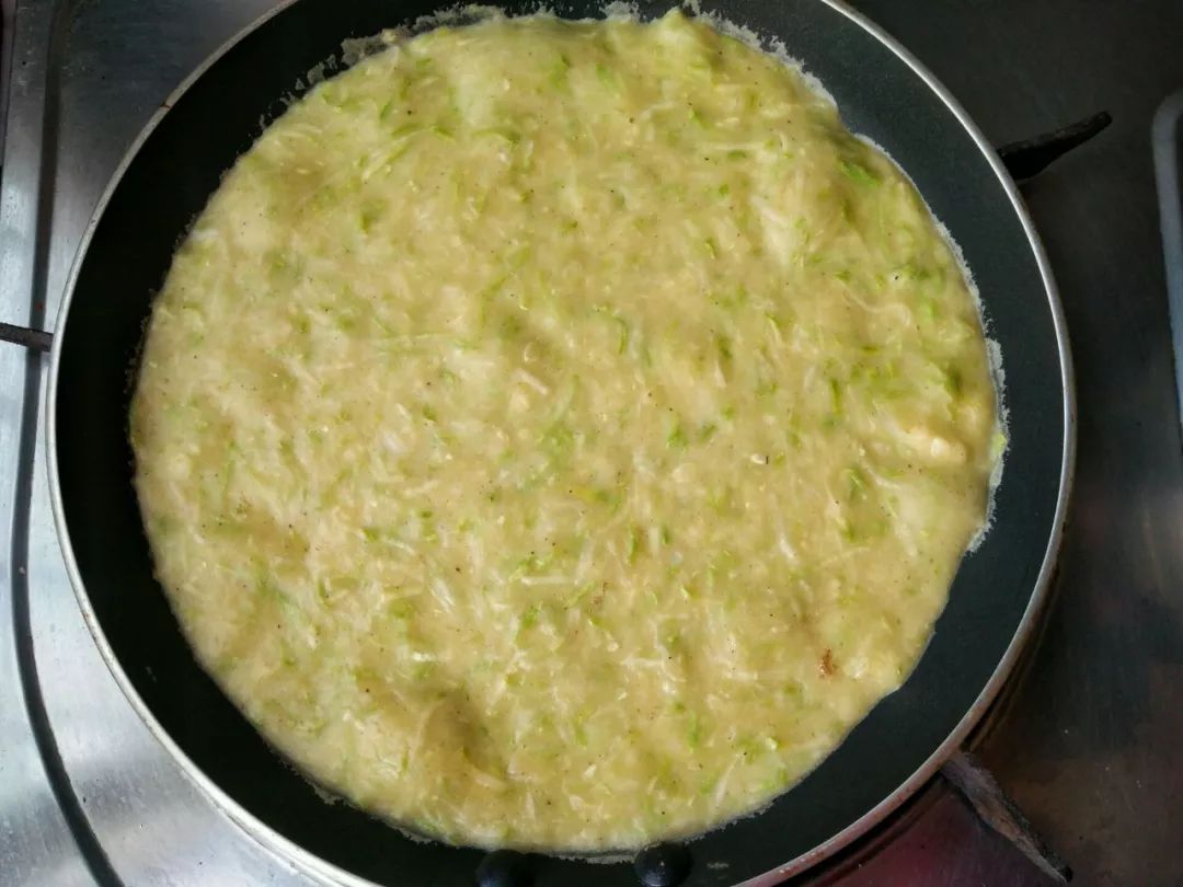 2、菜糊拌好后要马上煎制,时间长了西葫芦会出水;