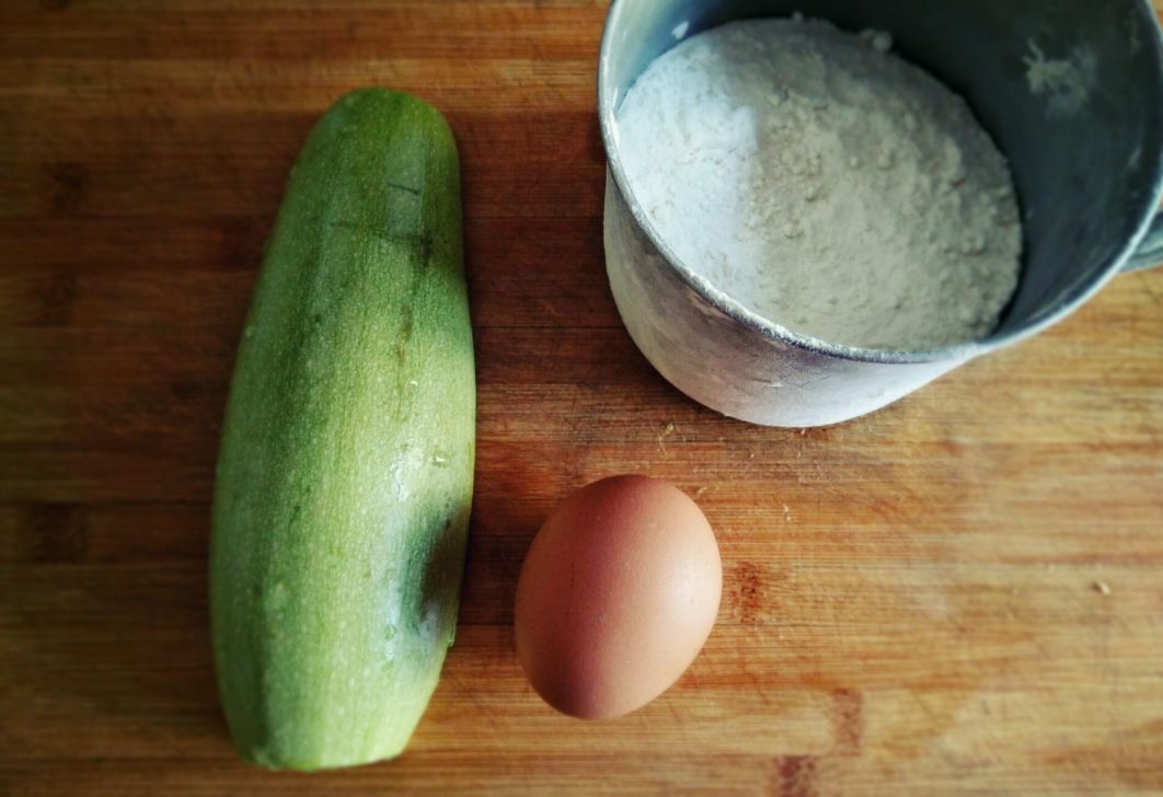 西葫芦1个,鸡蛋1个,白面适量;