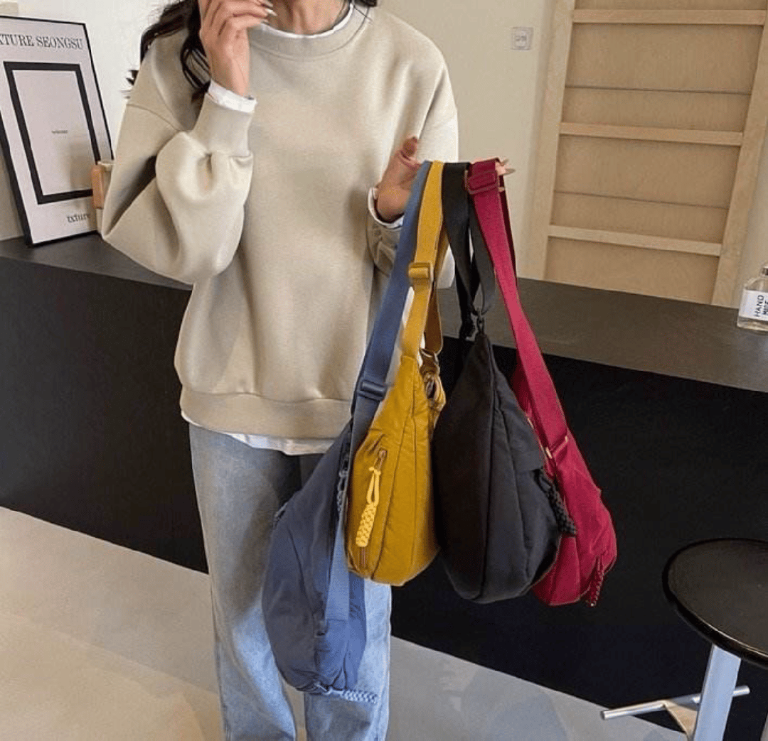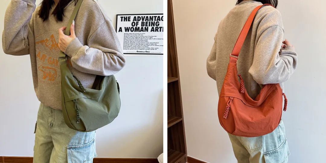 像这种轻便能斜挎的饺子包,能装下所有随身物品,出差时甚至还能容纳短途行李,让出门变得更加高效轻松。