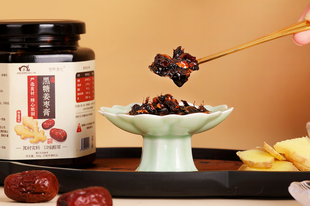 李时珍出品的营养食光黑糖姜枣膏,打破了传统姜枣膏类产品口感差、食用麻烦的刻板印象。