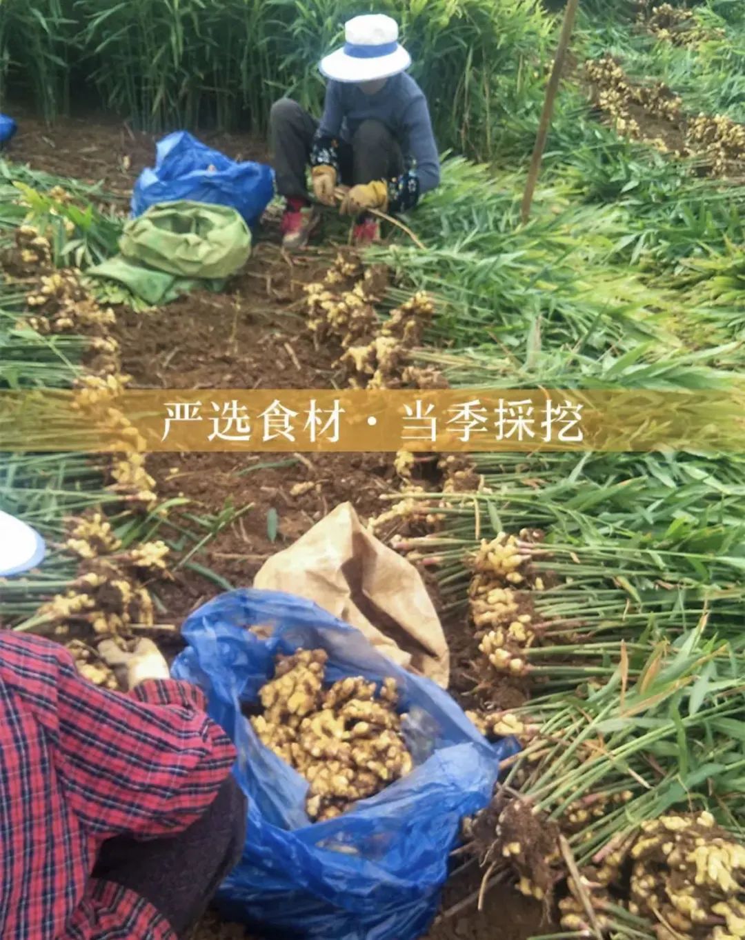 制作时,只取秋季采收的饱满姜块,手工切茸,你在膏体中看到的丝丝缕缕的金黄姜茸,都是大自然的馈赠。