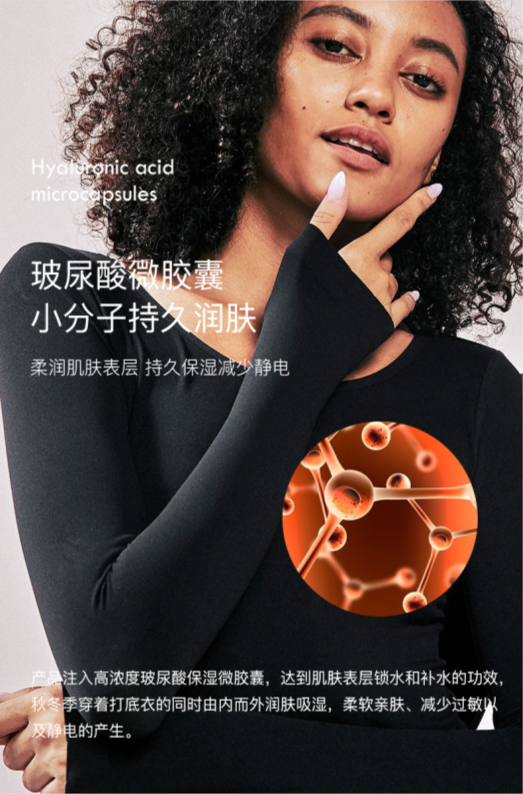 ①70D双股纤维和多股扁平丝,并有多种纤度和横截面,使保暖打底衣面料像皮肤一样柔软亲肤;②能够纺成更细的纱线,品质更出彩,如此一来就能做到更加轻薄;