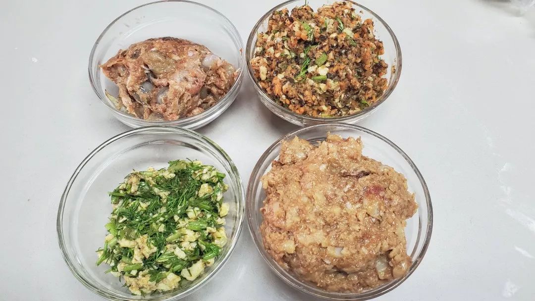 1、面粉加盐混匀后,倒入温水,水不要过多,硬一些的面团便于塑性,醒发10-15min,自行调制喜欢的馅料
