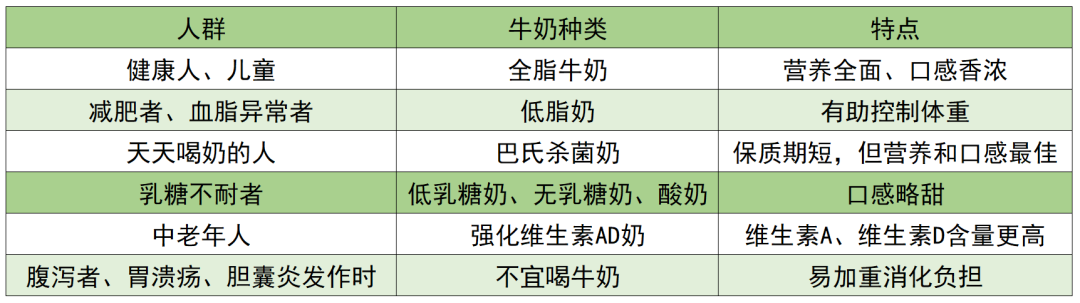 如何挑出与自己最“般配”的那一杯牛奶?不妨参考下面这张表。