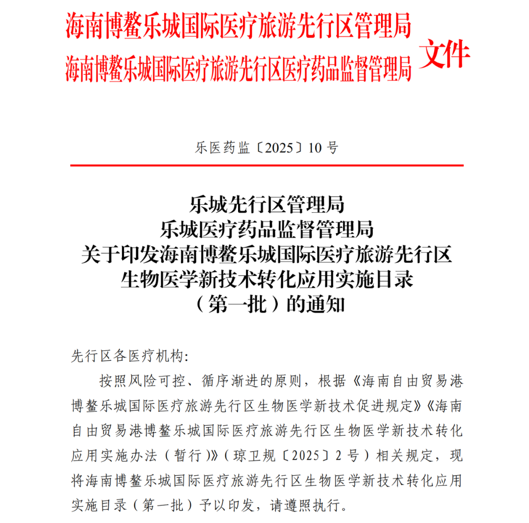• 2025年:中国海南博鳌实现临床治疗落地