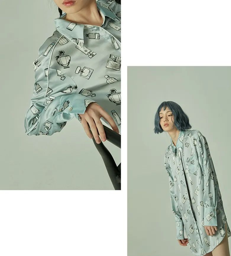 每个女人都有特别的味道,SANGLUO「香水博物馆」印花衬衫,意在找到你的特别味道。