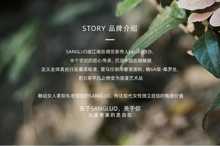 SANGLUO或许是你的心仪之选,因为她述说着关于女人与丝绸的故事。