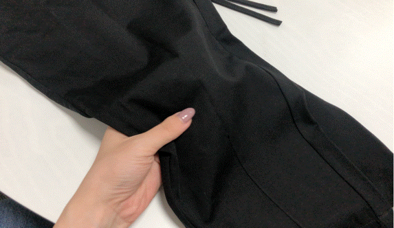 腰部采用的是松紧腰抽绳设计,抽绳的好处是:调整灵活,穿着体验比较舒服。
