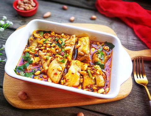 口水鸡这道菜的重点是调的红油汁,这个汁酸中带甜,甜中带咸,咸中带着蒜香、葱香,还有辣椒油的辣和麻油的麻,让你的口腔体会到更多层次的味道!