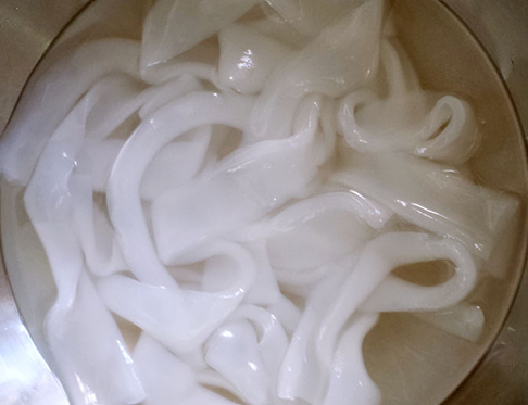 把拉皮用温热水洗,洗散、洗开后用凉水投一下;