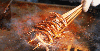 在长沙,不管什么季节,只要到了晚上,就必须吃烧烤,而烧烤,必有烤鱿鱼。方圆十米,就已经闻到飘溢的香味,烤炉上的烤串被烤得滋滋作响的声间,光闻到这就已经让人欲罢不能。