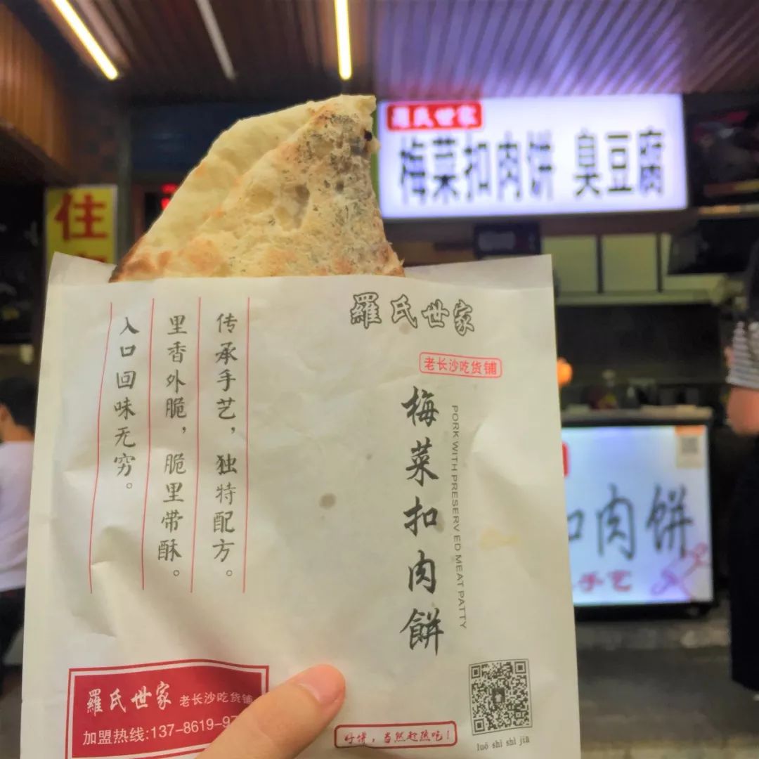 在长沙十分有名的小吃,现烤现卖,新鲜出炉的梅菜扣肉饼很烫,咬下去一口,面粉与梅菜扣肉溶于一起,脆而不腻,加了梅菜加深饼的香味,外饼色焦黄、味鲜美,香酥可口,别有风味,吃过才能体会其中感觉。