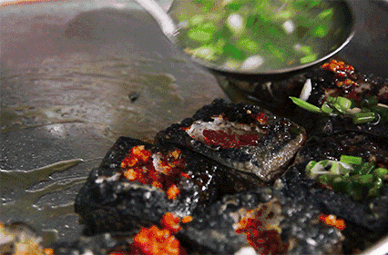 来长沙那必须是臭豆腐!色墨黑,外焦里能,炸好的豆腐中间是爆开,倒上一勺辣椒,混上腌制萝卜干,夹上臭豆腐,合着一起吃,咬下去咯吱脆,真是味蕾享受!