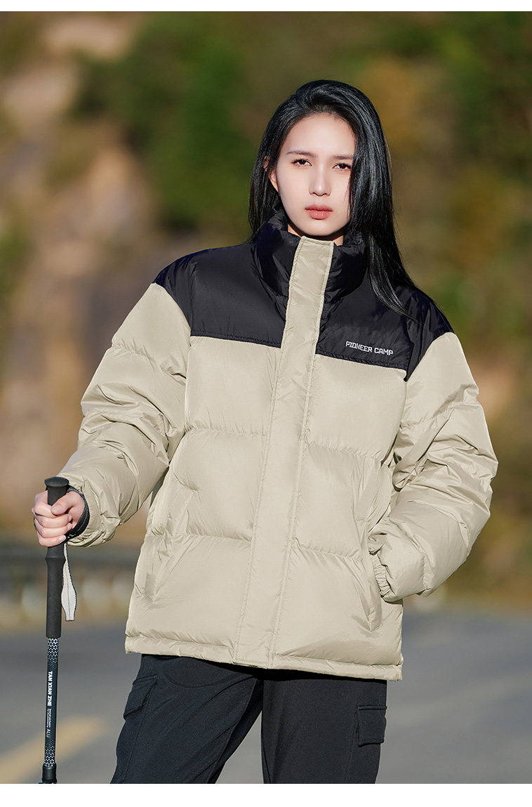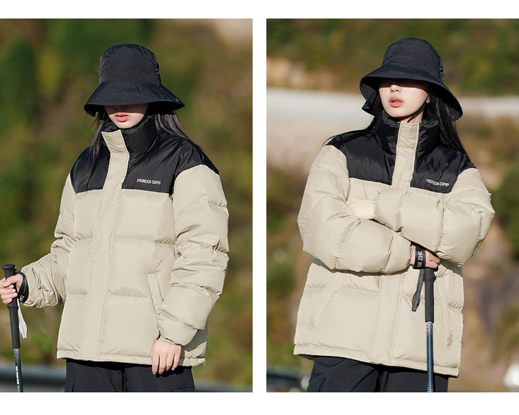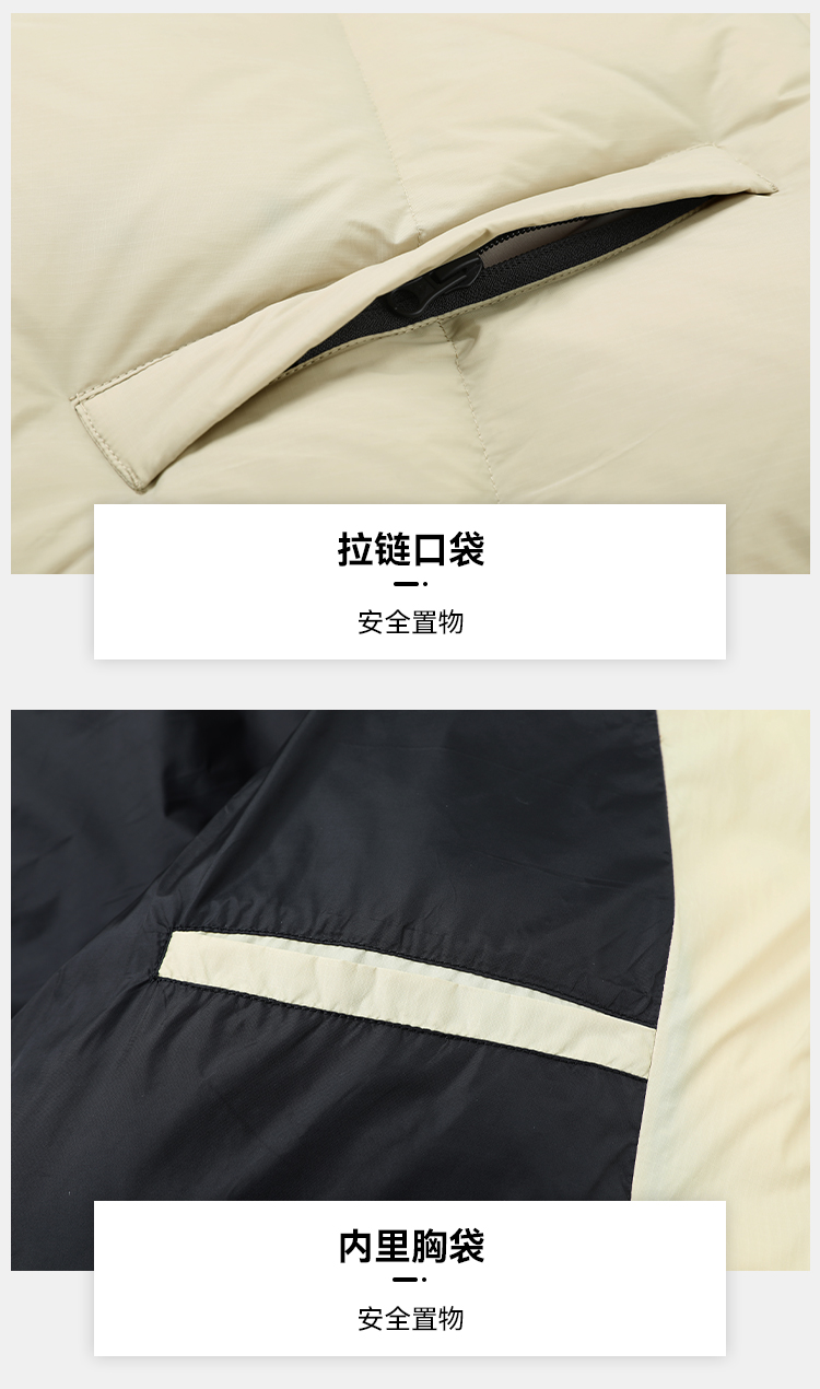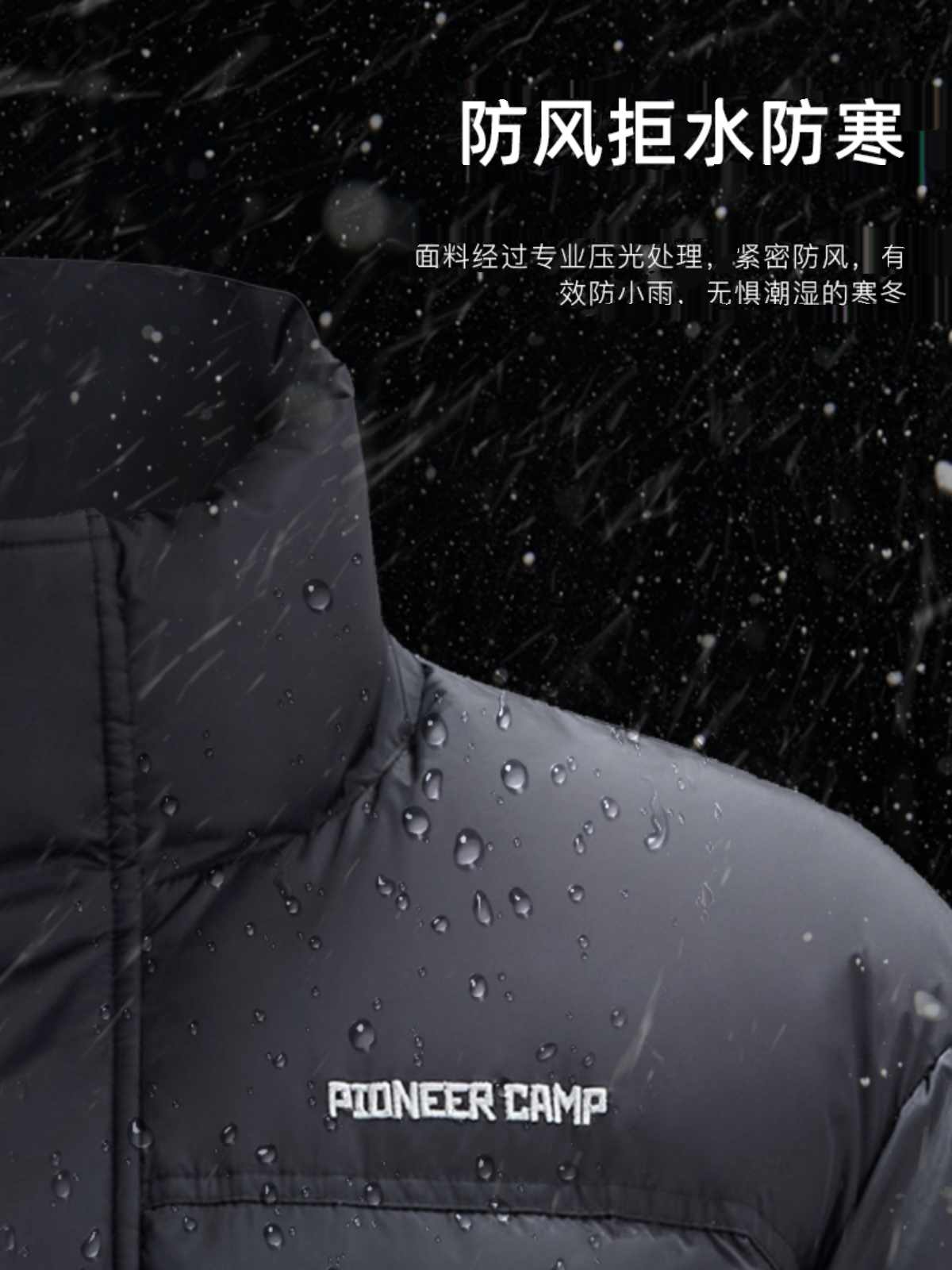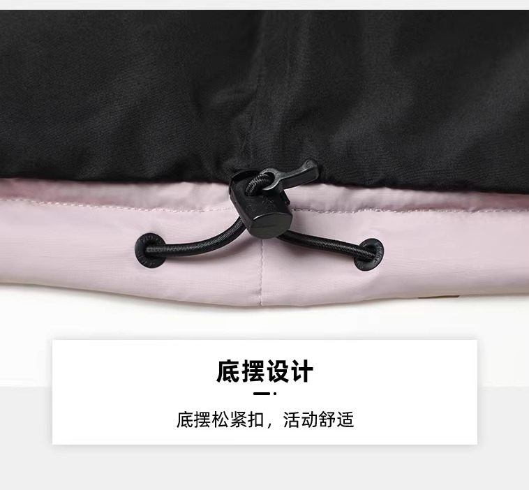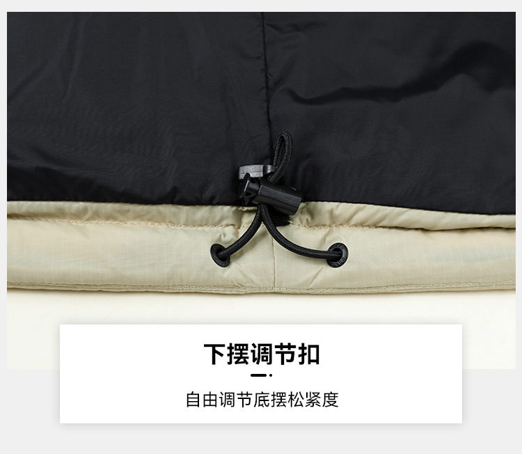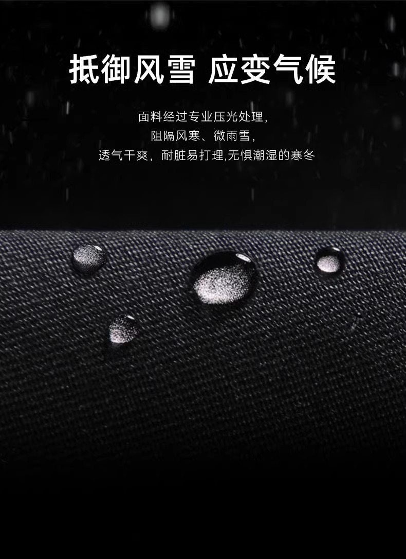 面料DWR持久防泼水,可抵御短时雨,紧密织法+压光涂层,大风依然稳暖。