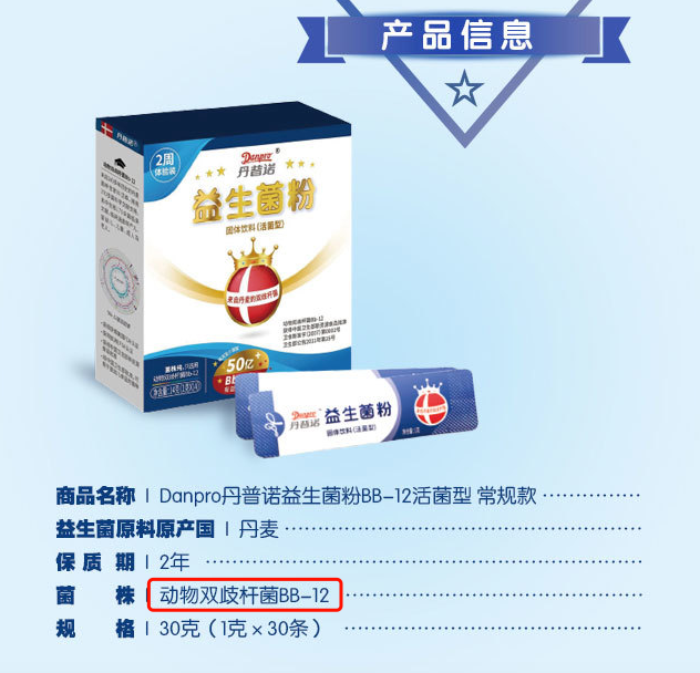 而且在益生菌的选择上,丹普诺只选用全球最负盛名的双歧杆菌菌株BB-12。