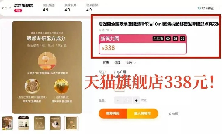 天猫旗舰店日常价格也要338元1瓶!