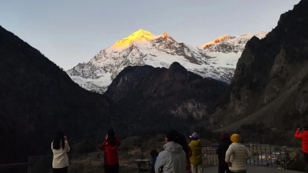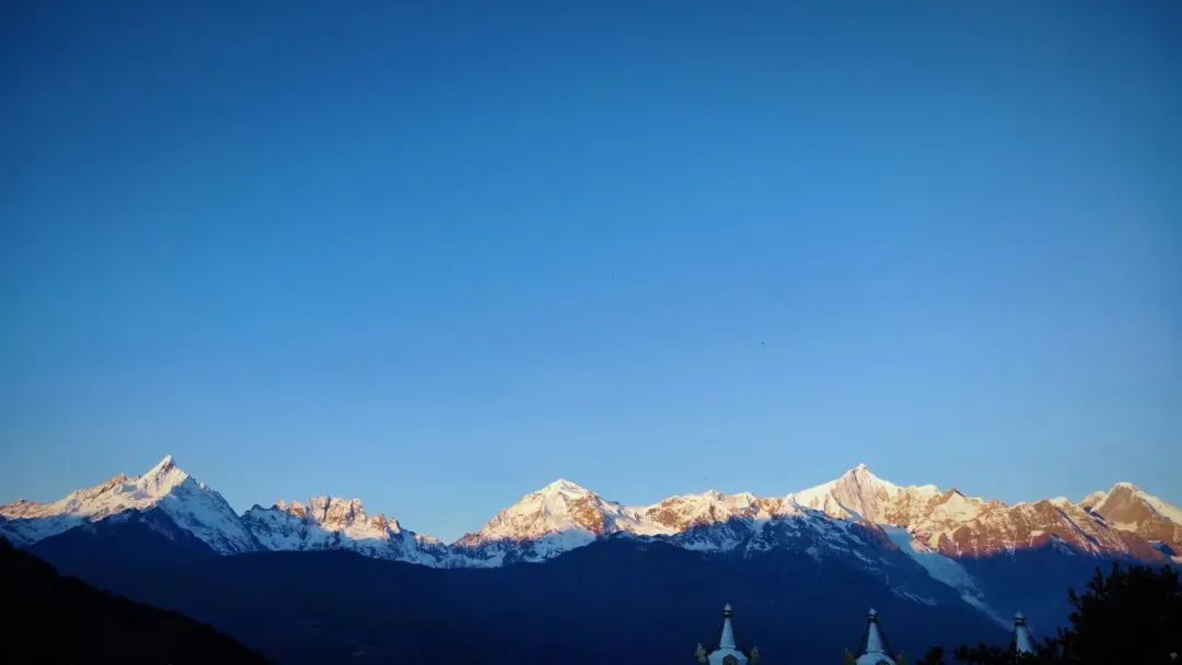 有人说,看到日照金山会幸运一整年。这我不知道,但我知道的是那一天我看着天空从星空紫变成阳光蓝,白色的冰川在阳光照耀下逐渐变暖,随之夜晚的冷寂消逝,迎来朝阳的新生。看一次日照金山,等于洗涤了一次心灵。