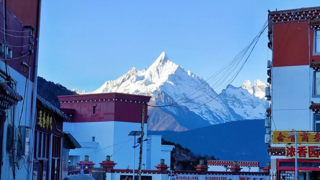 行程的第一天,我们住在德钦县,抬眼就能看到雪山。飞来寺观景平台是每一位普通游客都能向神山许愿的地方。