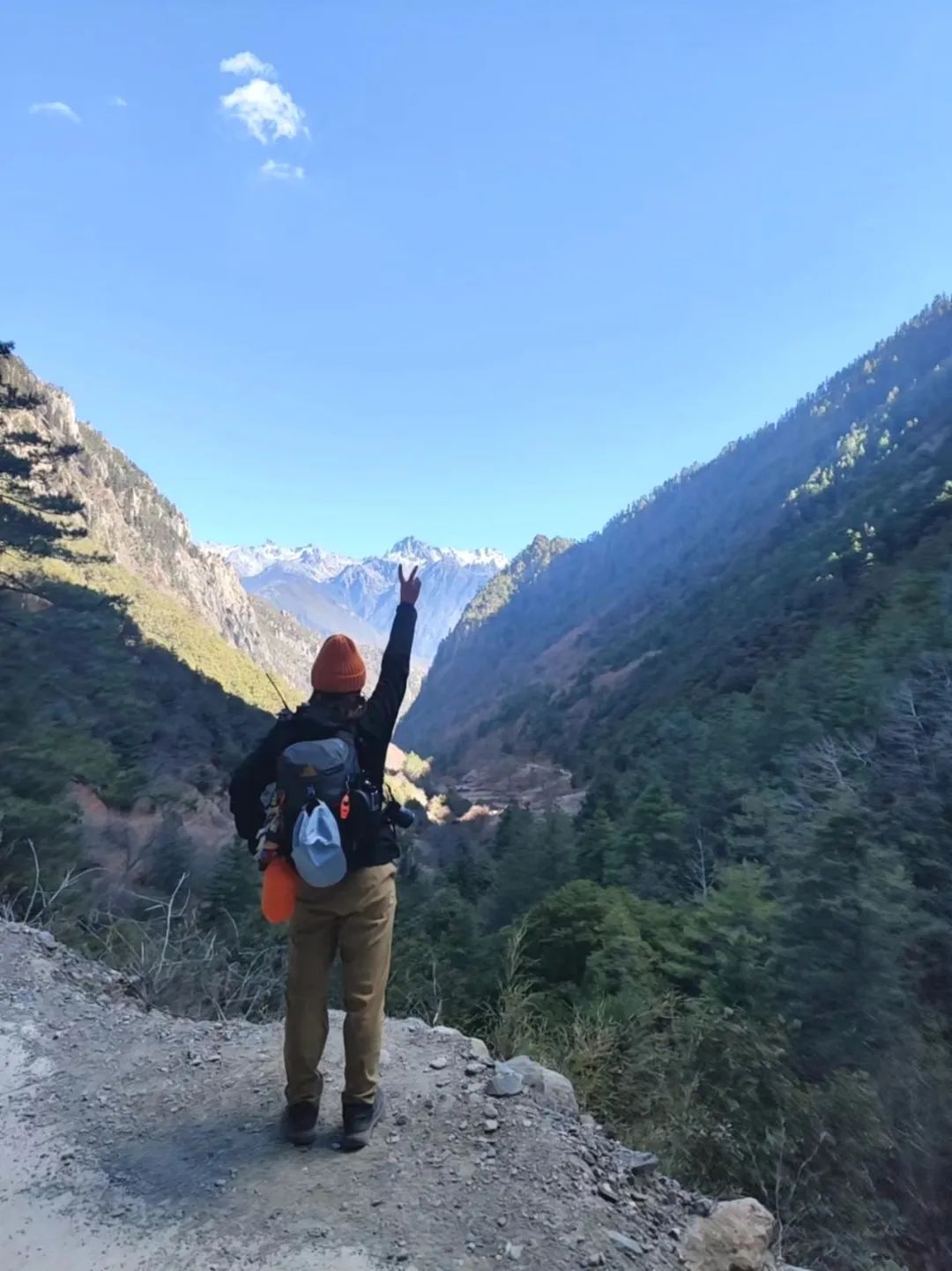 我们先走了冰湖线。这条徒步路线往返全程14km,累积爬升850m。以雨崩上村为起点,途径雨崩下村-沙棘林-梅朵崩顶-笑农垭口-笑农大本营-冰湖。这条线路的景观丰富度和体验感真的很不错,可谓围着神山移步换景。