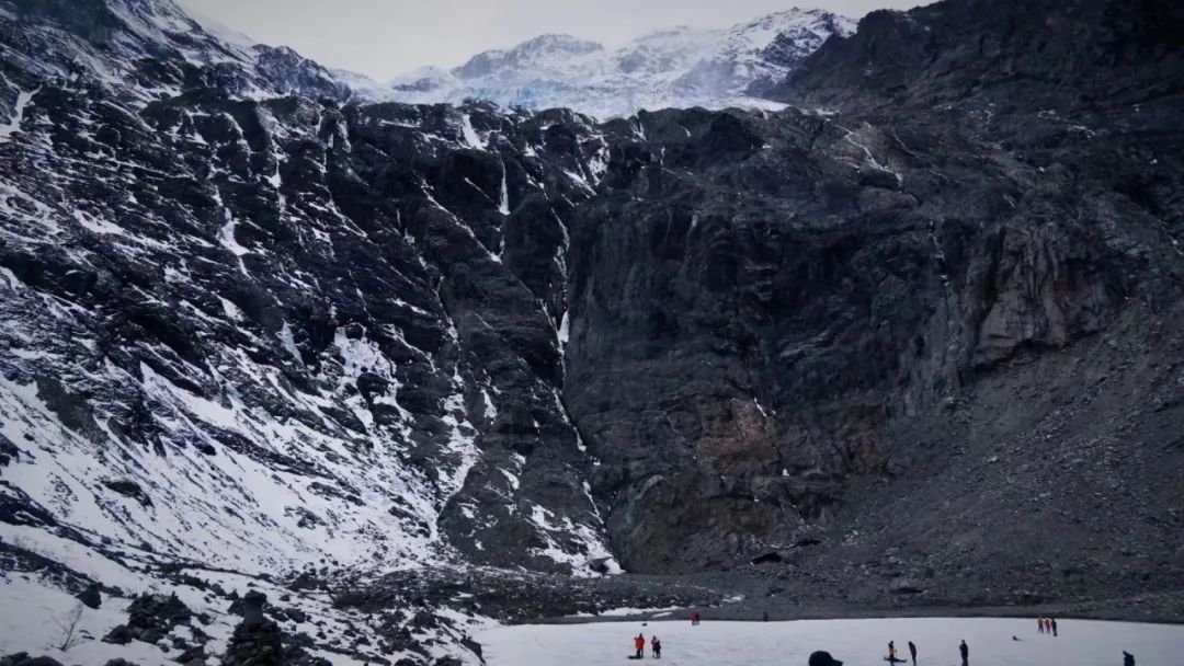 随着海拔升高,爬升加剧,穿过一片“北境森林”和乱石滩后,“五步一喘,十步一歇”地抵达了冰湖。黑色的山影和云海相互重叠,映衬着下方的蓝白色冰川和冻结住的冰斗湖,恍惚间让人觉得有点不真实。