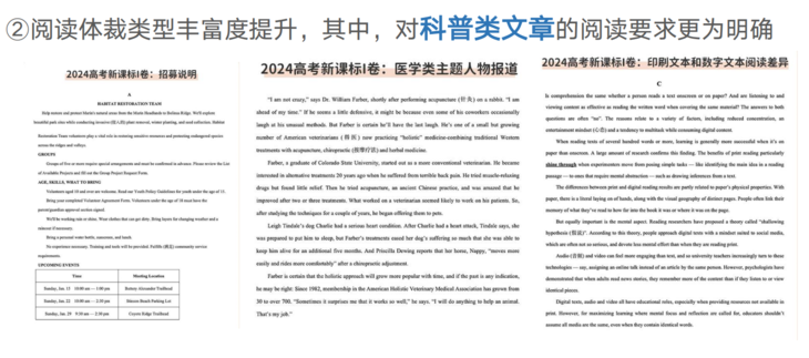 阅读量要大幅提升、体裁要阅读的更丰富、科普类的文章要求更深度的理解。