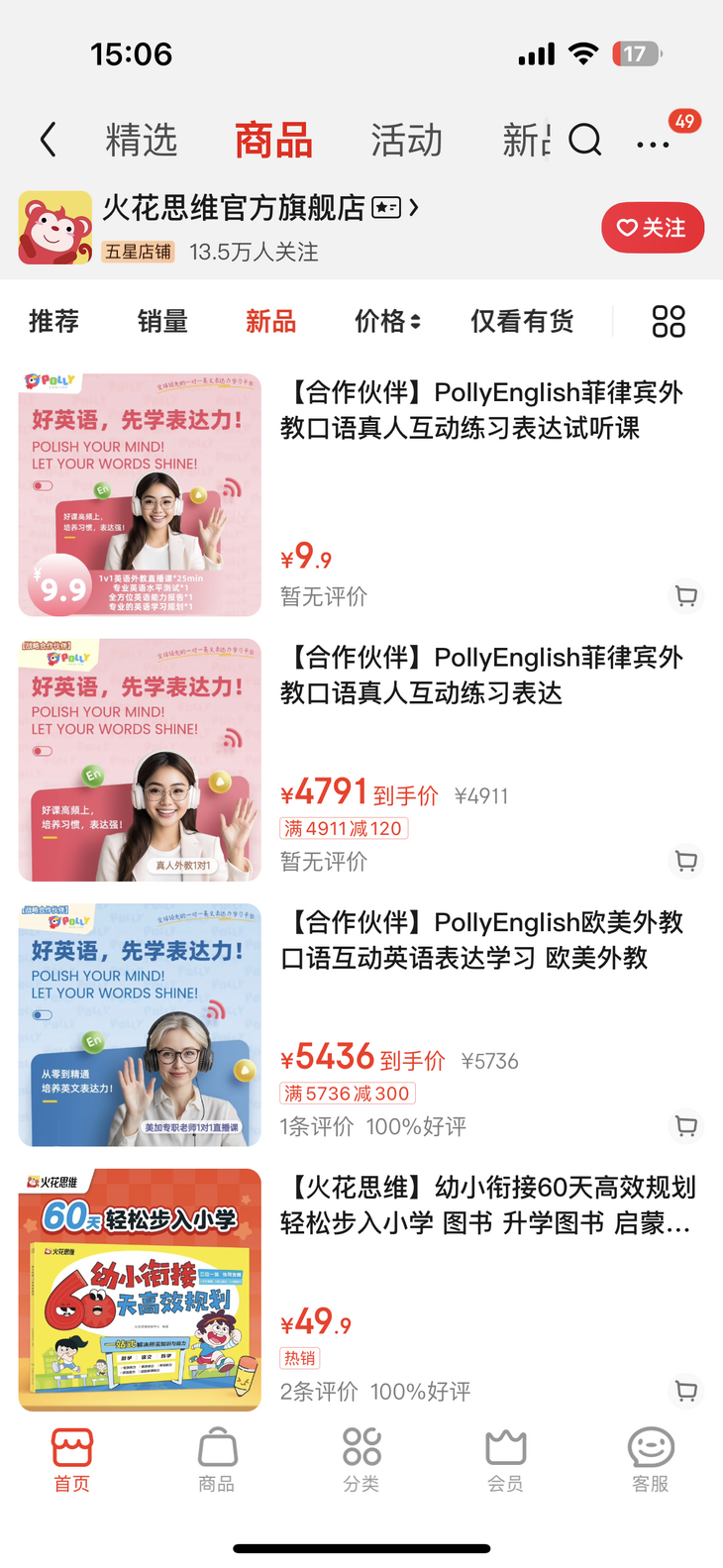 另外,PollyEnglish系统课已上架火花思维京东、淘宝官方旗舰店,课程款项受第三方机构监管,资金安全无忧