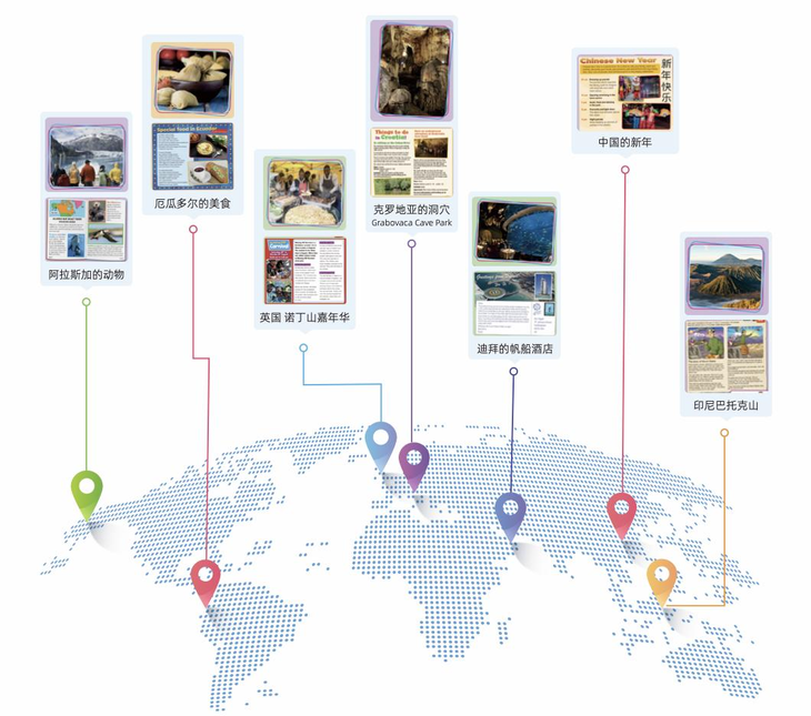 Polly用的这套教材中涵盖的文化知识不仅仅包含英语国家的知识:
