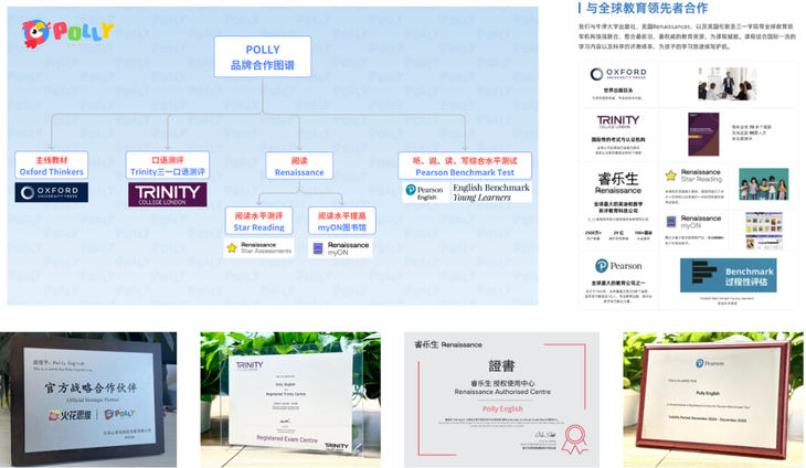 在口语测评、阅读水平测评、综合水平测评方面,加强了跟全球领先的教育机构的合作,借助他们的测评体系和教育资源全面为PollyEglish的课程赋能。