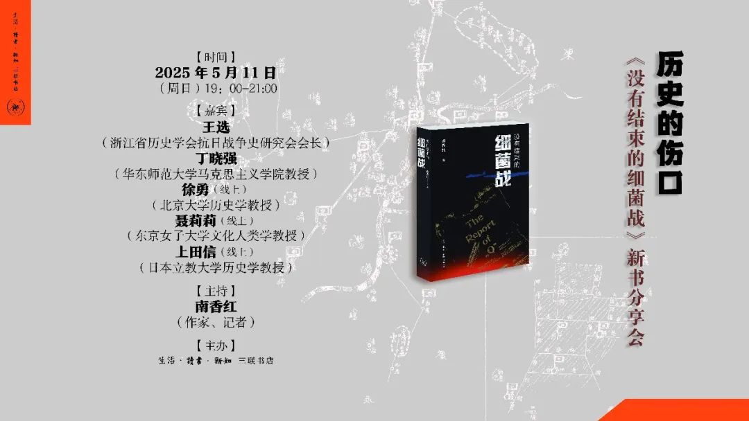 本次活动邀请作者、与在日本法庭进行了十年细菌战诉讼的中国原告团团长王选女士、国内外相关学者对谈,再现那段历史中不为人知的真相,探讨那场非常规战争对中国历史和现实的影响。