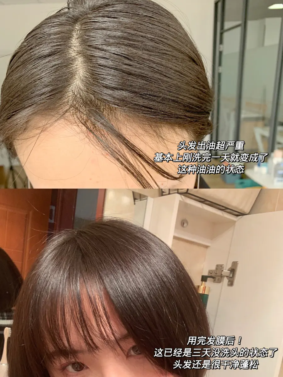 自从用了介个发膜以后就省事多了~头顶出油明显缓解,控油效果真的优秀!头发也蓬蓬的,发尾摸起来顺滑不打结~